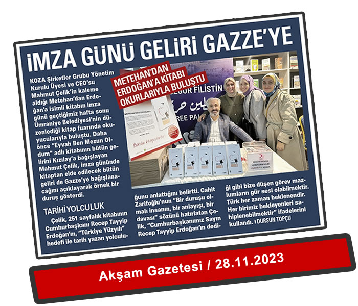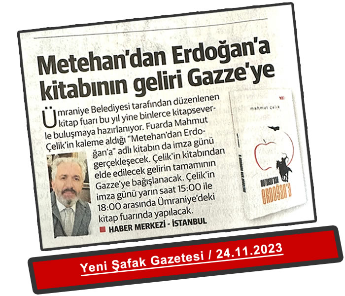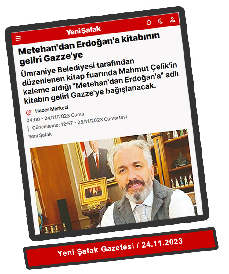 Ümraniye Belediyesi tarafından düzenlenen kitap fuarında Mahmut Çelik'in kaleme aldığı "Metehan'dan Erdoğan'a" adlı kitabın geliri Gazze'ye bağışlandı.